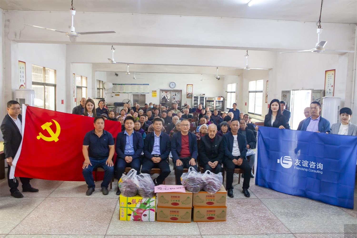 - 暖暖金秋意,濃濃敬老情。10月14日上午,友誼國(guó)際工程咨詢股份有限公司董事長(zhǎng)張海岸攜公司黨委、民建友誼支部及員工代表先后來(lái)到瀏陽(yáng)沙市鎮(zhèn)敦睦村委會(huì)和沙市鎮(zhèn)敬老院,為老人們送上重陽(yáng)節(jié)問(wèn)候與愛(ài)心物資。